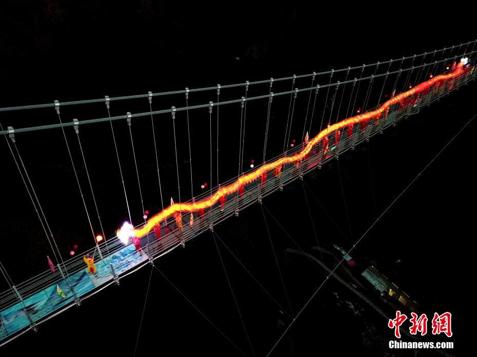 高空玻璃悬桥上舞龙闹新春