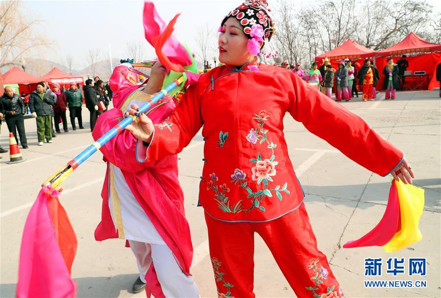 2月11日,河北井陉县的民间艺人在石家庄鹿泉区民俗大庙会上进行表演。 新华社发(张秀科 摄)