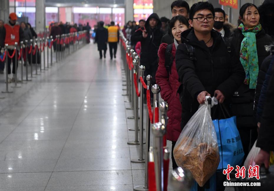 在阜阳火车站,来自临泉的小伙子张强带着家乡的特产踏上回上海的列车。 韩苏原 摄
