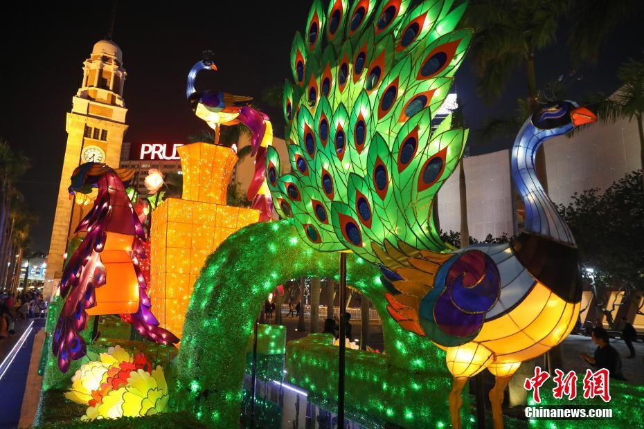 缤纷孔雀彩灯展亮相香港维港贺元宵