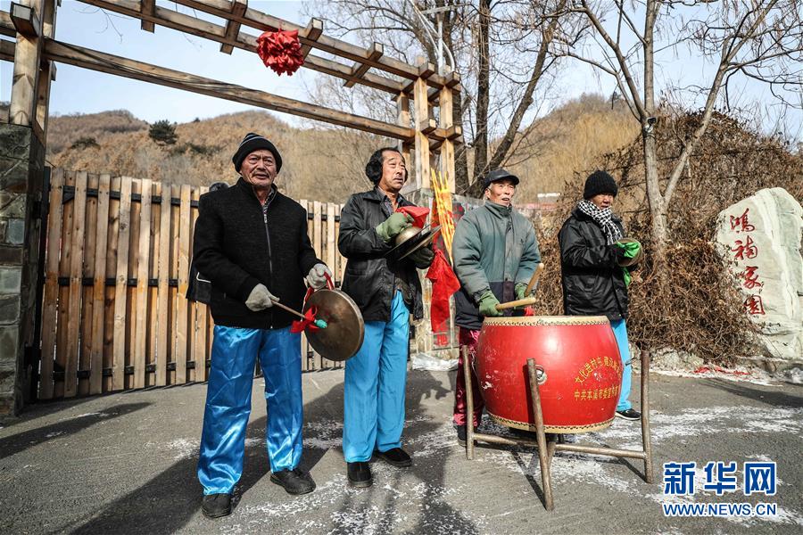 2月12日,辽宁本溪满族自治县同江峪村村民在排练。新华社记者 潘昱龙 摄