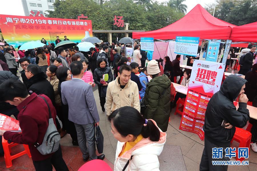 当日,广西南宁市2019年“春风行动”启动仪式暨大型招聘会在该市西乡塘区友爱广场举行,120余家企业提供5000多个就业岗位。