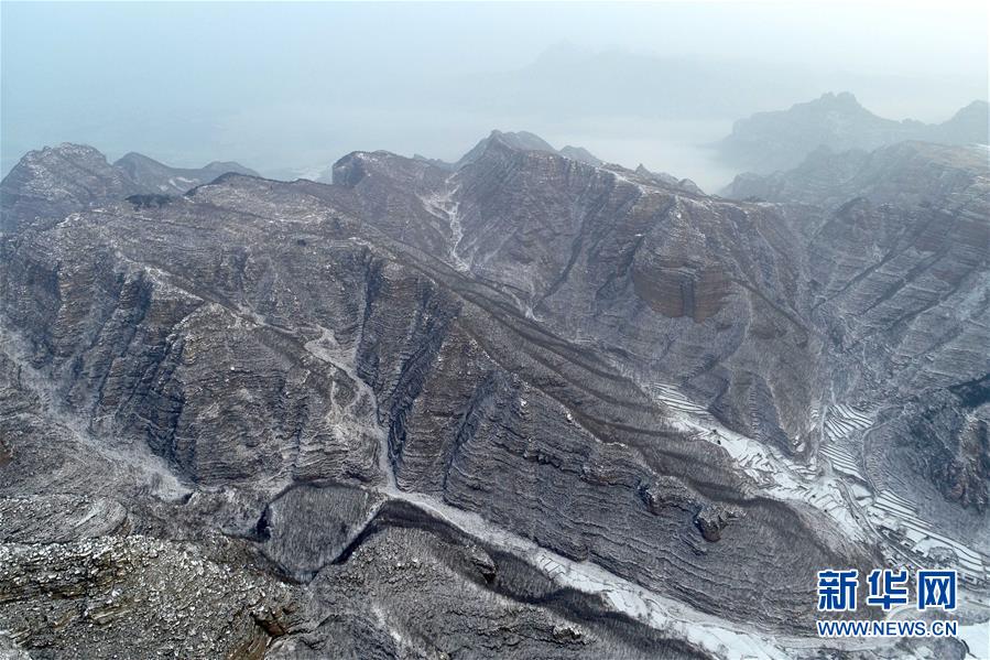 这是2月15日在河北省沙河市拍摄的太行山雪景(无人机拍摄)。 近日,河北、山西等地迎来连续降雪。雪后太行山颜色素雅,宛如水墨画卷。 新华社发(陈雷 摄)