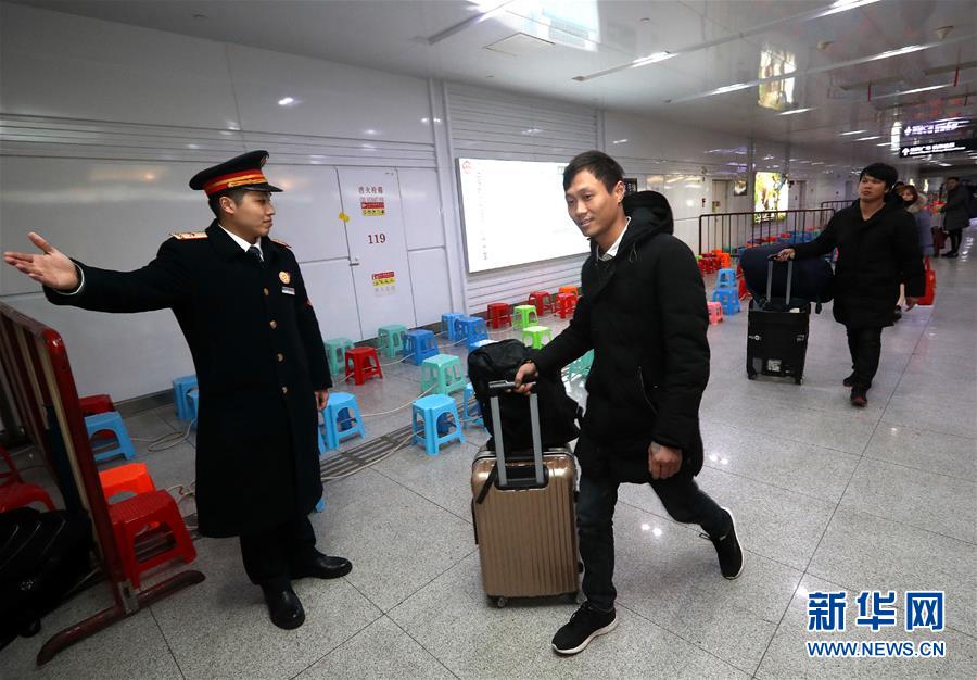 2月17日凌晨,上海火车站的客运值班员将午夜抵达上海站的旅客引导至临时休息区。 春运期间,上海火车站在地下停车库设置临时休息区,供凌晨公共交通停运期间抵达上海的旅客休息,并提供开水、食品等,让旅客在寒夜中感受到温暖。 新华社记者 陈飞 摄