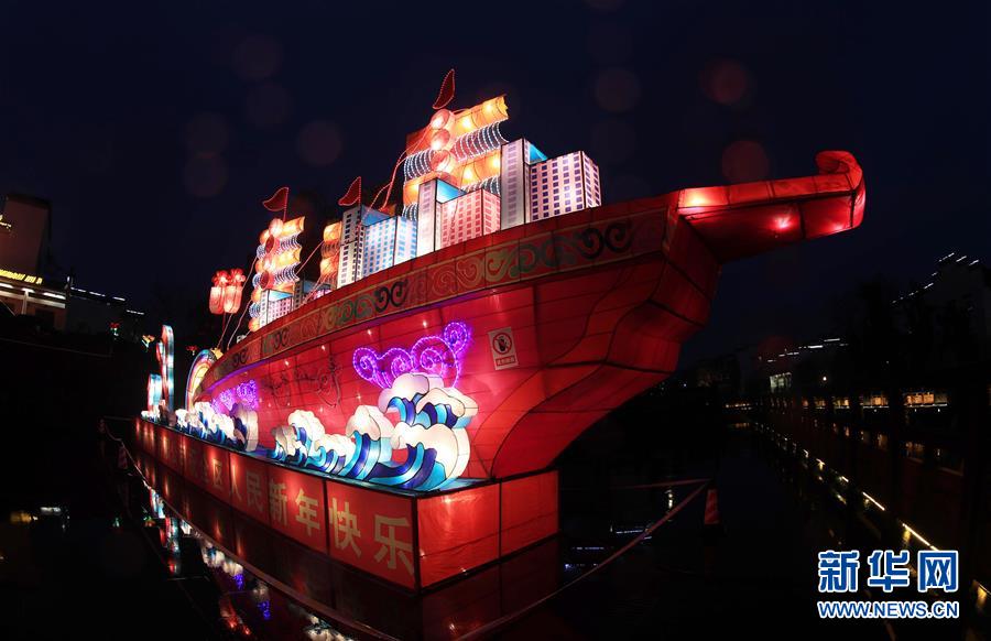 2月17日晚在安徽省黄山市岩寺古镇拍摄的彩灯。 元宵节将至,各地张灯结彩,一派喜庆热闹的节日景象。 新华社发(施广德 摄)