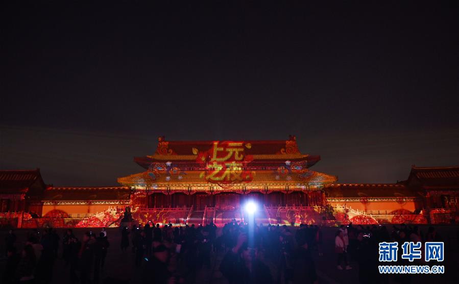 2月19日晚拍摄的故宫太和门。 新华社记者金良快摄