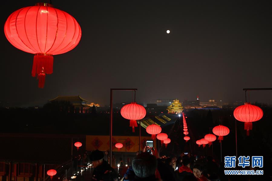 2月19日晚拍摄的故宫城墙。 新华社记者金良快摄
