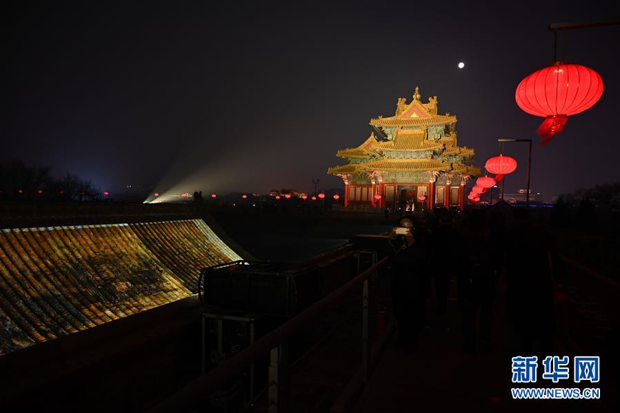 2月19日晚拍摄的故宫城墙。 新华社记者金良快摄