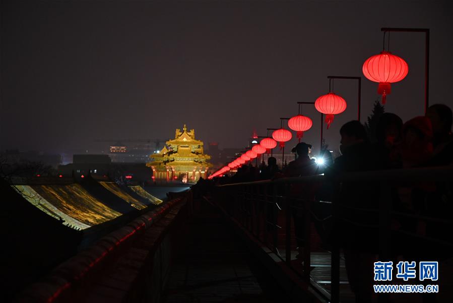 2月19日晚拍摄的故宫城墙。 新华社记者金良快摄