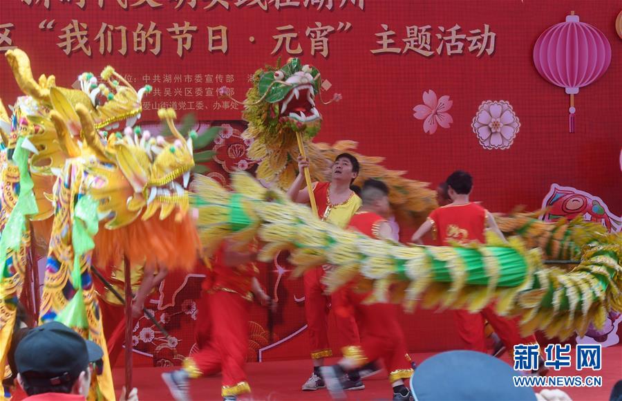 2月19日,浙江省湖州市吴兴区八里店镇群众进行舞龙表演。 新华社记者 黄宗治 摄