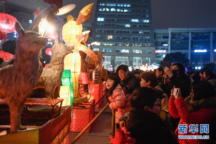 2月19日,市民在杭州西湖文化广场元宵灯会上参观花灯。 新华社记者 黄宗治 摄