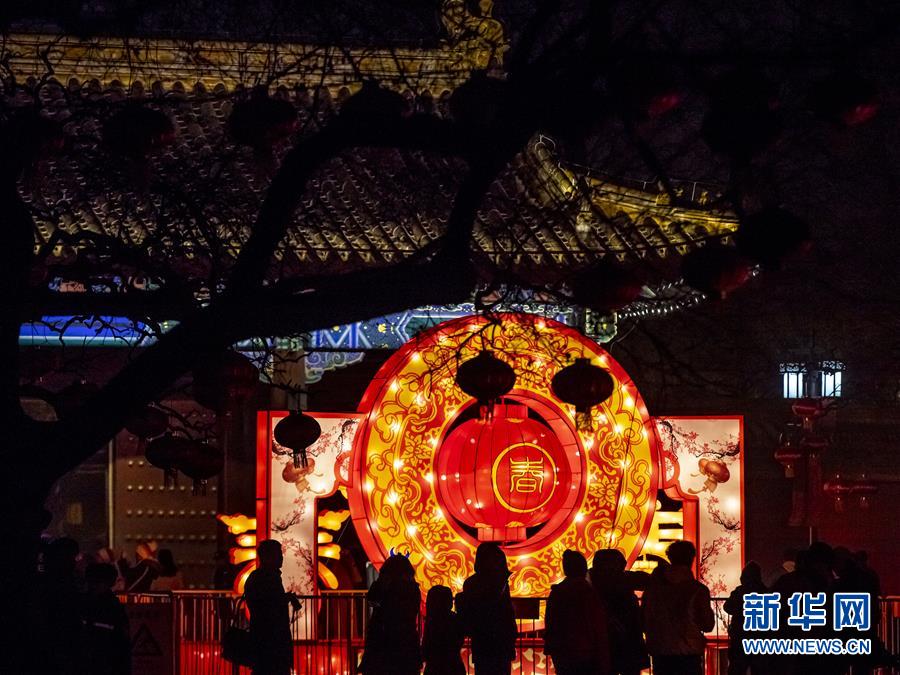 2月19日,人们在北京景山公园举行的元宵灯会活动中欣赏彩灯。新华社记者 沈伯韩 摄