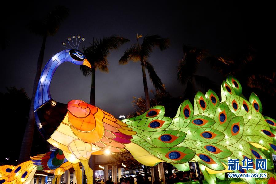 2月19日,在香港尖沙咀,市民和游客在观赏元宵彩灯。新华社发(王申 摄)