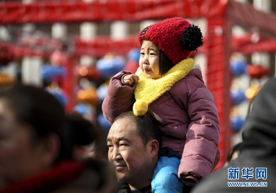 2月19日,在新疆乌鲁木齐大巴扎步行街,一名小朋友在观看演出活动。 新华社记者 王菲 摄