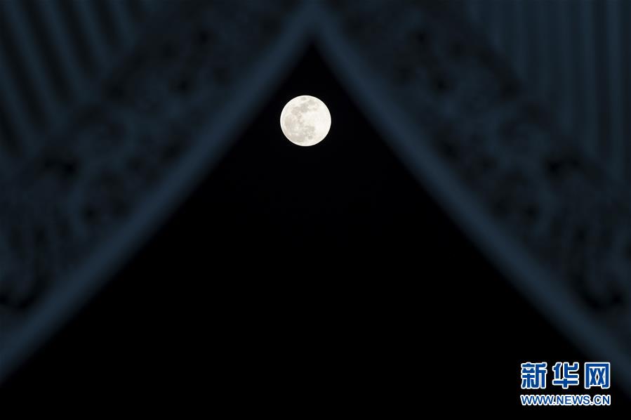 这是2月19日在宁夏银川市阅海湾中央商务区拍摄的月亮。 当日是元宵佳节,本年度第二场“超级月亮”,也是年度“最大最圆月”现身天宇,与“元宵月”上演“巧遇”好戏。 据介绍,“超级月亮”是指处于近地点位置附近的满月。此次天象与佳节的“巧遇”,为元宵赏月增加了看点,平添了情趣。 新华社发(冯开华 摄)
