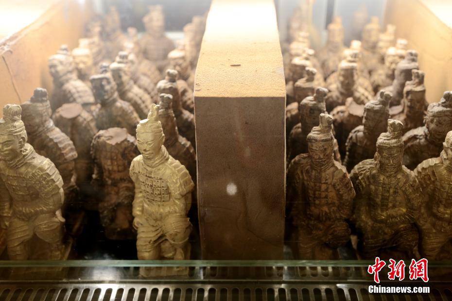 2月20日,陕西西安一家酒店大堂展销柜内摆放着的“兵马俑巧克力”。据酒店工作人员介绍,这种兵马俑造型的巧克力每个高约15公分,售价68元人民币,自今年初推出以来,不少游客专程前来购买,颇受欢迎。中新社记者 张远 摄