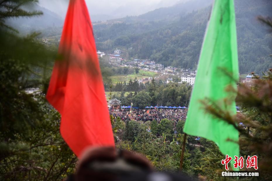 广西上万名少数民族民众赶坡会 千人吹芦笙比响