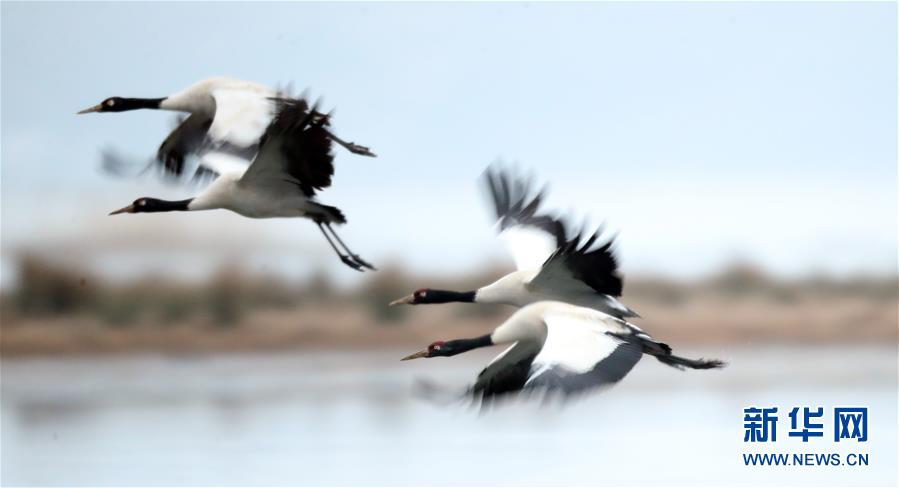 2月21日在草海国家级自然保护区内拍摄的黑颈鹤。 新华社发(胡攀学摄)