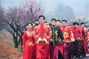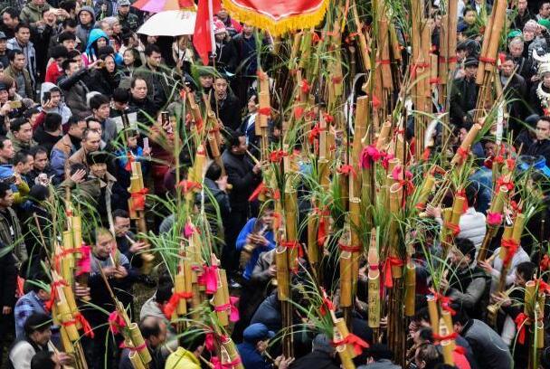 广西上万名少数民族民众赶坡会 千人吹芦笙比响