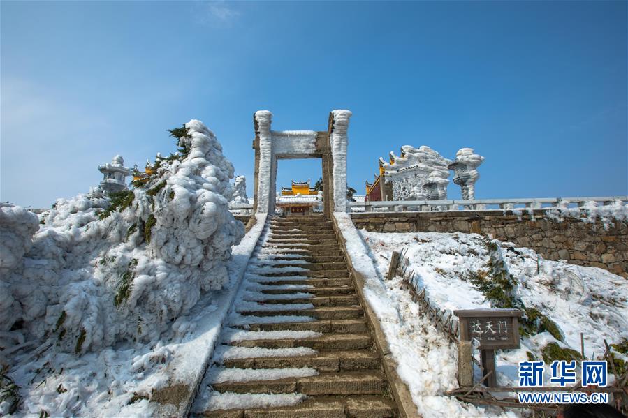 这是2月23日拍摄的湖北红安天台山景区景色。 当日,雪后初霁,湖北省红安县天台山景区银装素裹,吸引众多游人前来赏景。 新华社发(张宏斌 摄)