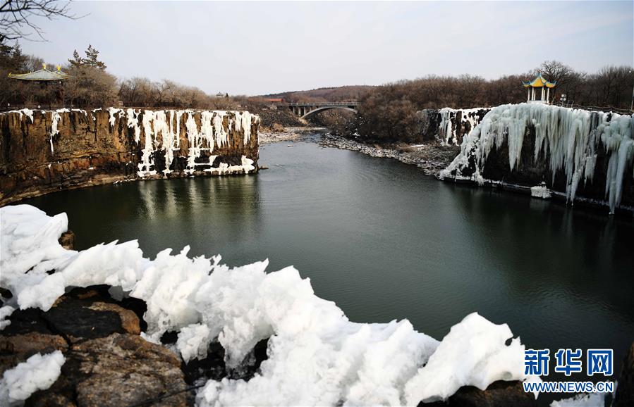 这是吊水楼瀑布的冰瀑景观(2月24日摄)。 去冬今春以来,黑龙江省镜泊湖的吊水楼冰瀑景色壮观,吸引许多游人前来观赏。 新华社记者 王建威 摄