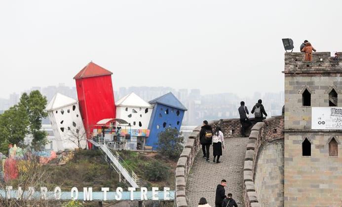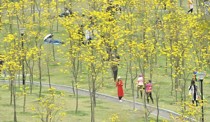 2月25日,游人在合肥市匡河岸边赏梅(无人机拍摄)。 当日,安徽省合肥市天气晴好,匡河岸边的梅花开放,吸引了许多市民和游客。 新华社记者 张端摄