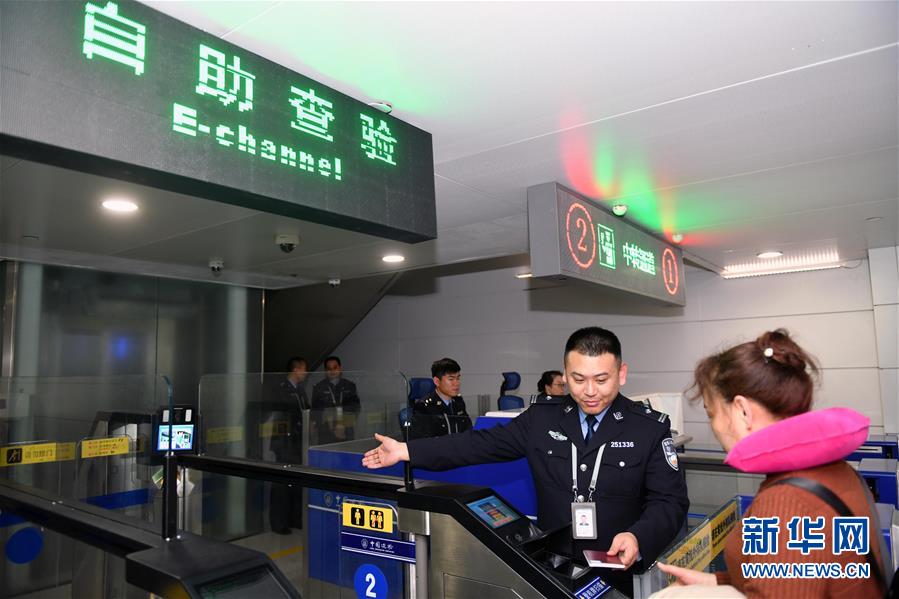 2月27日,检查员引导旅客通过自助查验通道。 日前,山东烟台机场出入境边防检查站积极落实“放管服”要求,及时科学调整人工通道和自助通道设置比例,加快推进自助通道升级改造,有效提升了出入境通关效率。 新华社记者 朱峥 摄