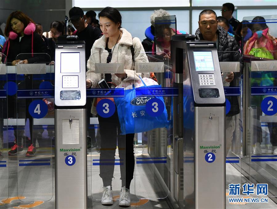 2月27日,旅客在自助查验通道通关。 日前,山东烟台机场出入境边防检查站积极落实“放管服”要求,及时科学调整人工通道和自助通道设置比例,加快推进自助通道升级改造,有效提升了出入境通关效率。 新华社记者 朱峥 摄