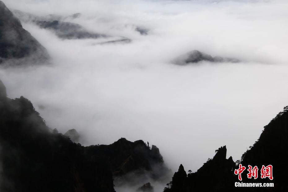 2月28日,安徽黄山风景区雨后出现飘渺的云海,如同水墨画。中新社发 施广德 摄 图片来源:CNSPHOTO