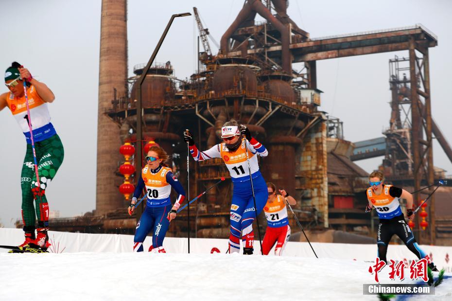 北京首钢园区内上演越野滑雪赛