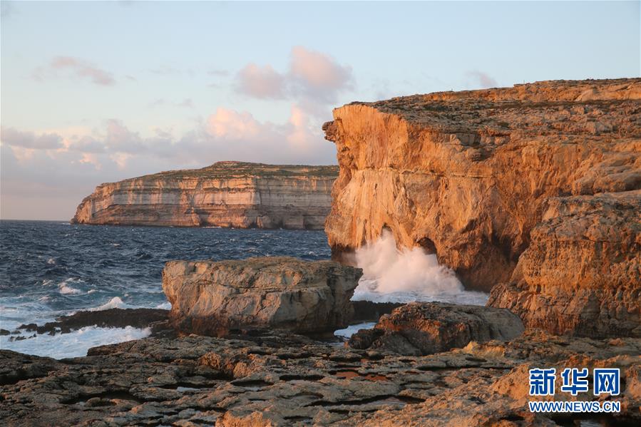 这是3月3日在马耳他戈佐岛拍摄的落日余晖中的“蓝窗”旧址。 2017年3月8日,由于大风引起巨浪冲刷,位于马耳他第二大岛戈佐岛西北角的著名景点“蓝窗”坍塌。“蓝窗”坍塌以后,其旧址风光依然吸引着一些游客。 新华社记者 袁韵 摄