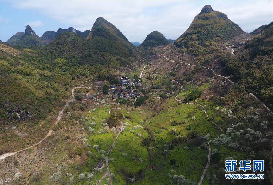 广西融安县东起乡崖脚村铜板屯景色(3月3日无人机拍摄)。