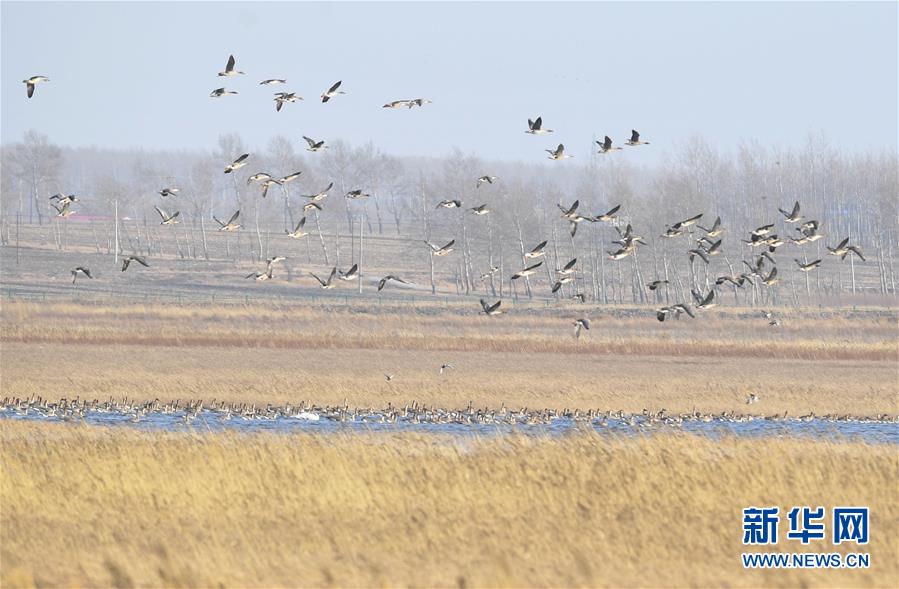 辽宁康平:候鸟飞临卧龙湖湿地