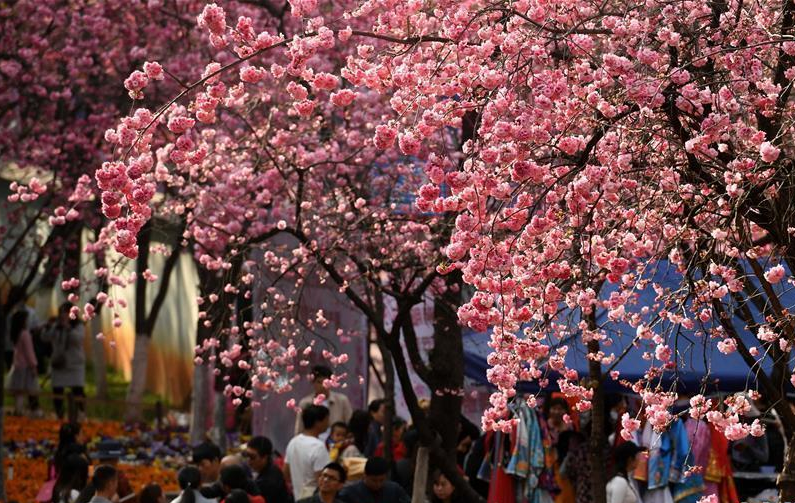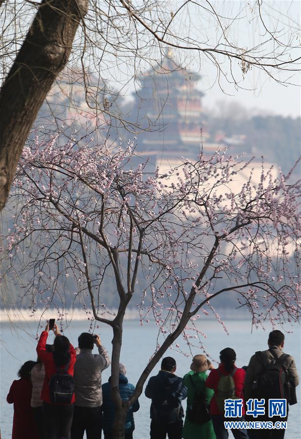 3月17日,游客在北京颐和园拍照。 春日里的颐和园风光旖旎,游人如织。 新华社记者 张传奇 摄