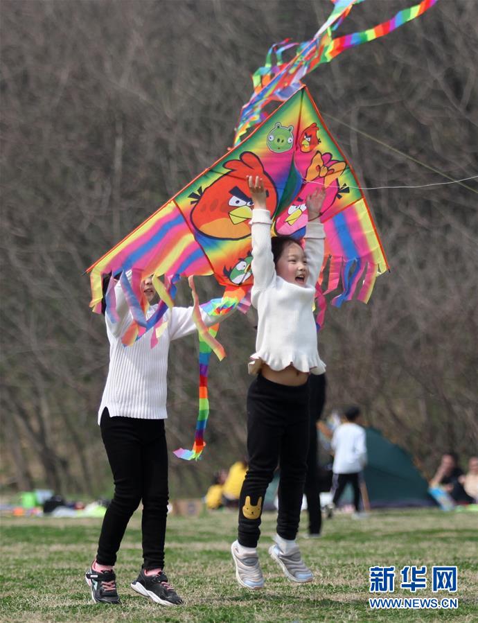 3月17日,小朋友在江苏省扬州市汉唐文化景区放风筝。 新华社发(孟德龙 摄)