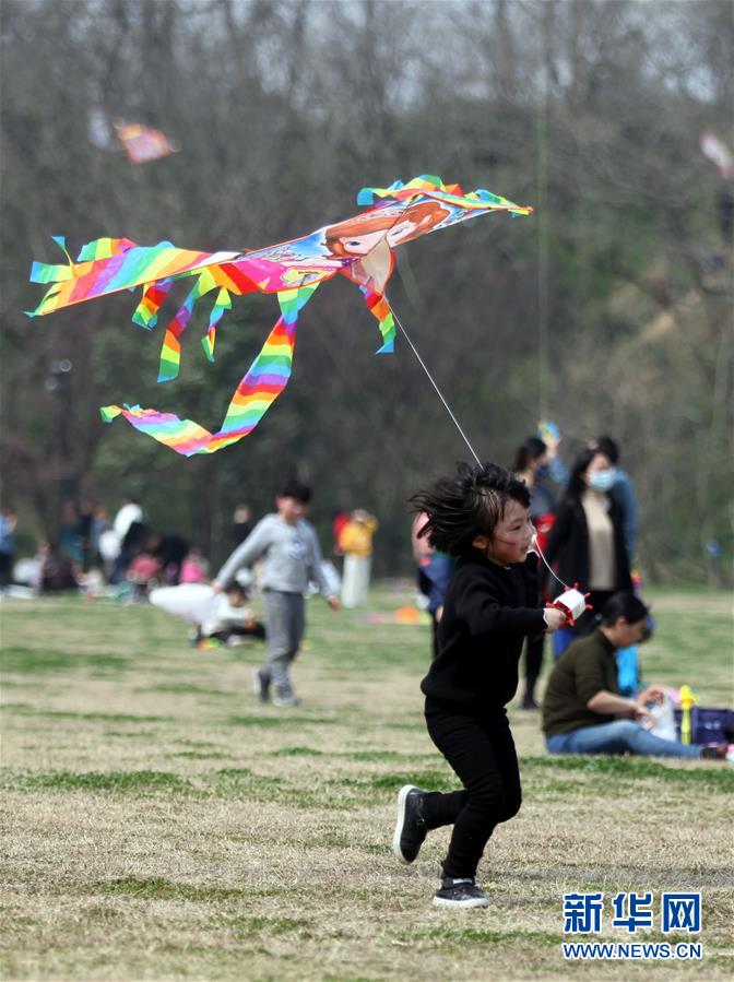 3月17日,小朋友在江苏省扬州市汉唐文化景区放风筝。 新华社发(孟德龙 摄)