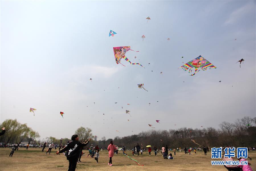 3月17日,人们在江苏省扬州市汉唐文化景区放风筝。 新华社发(孟德龙 摄)