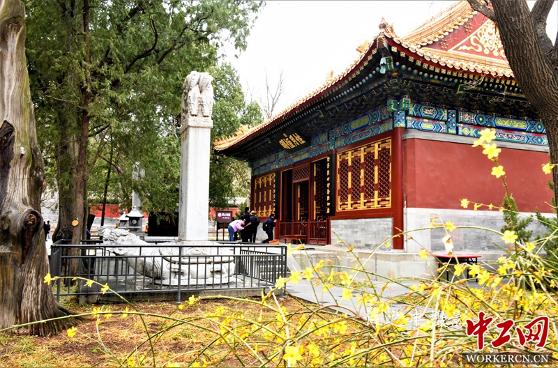 十方普觉寺,位于北京市西山北的寿牛山南麓。该寺始建于唐贞观年间(627-649),至今已有1300多年历史。原名兜率寺,又名寿安寺,清雍正十二年重修后改名为普觉寺。因寺内铸造有巨大铜卧佛,故又称卧佛寺。图为2019年3月15日的北京十方普觉寺。工人日报-中工网许之丰摄影报道
