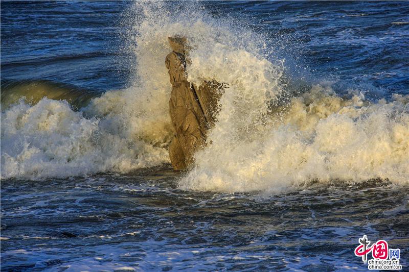 【点睛】春日的灵山湾海滨,大海呈现自己的激情澎湃,海浪追赶海浪,急切地奔向海岸。