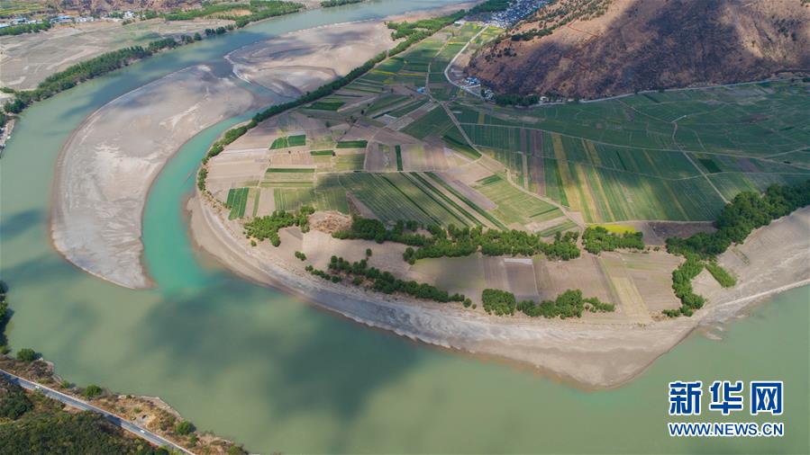 这是无人机拍摄的“长江第一湾”一景(3月17日摄)。“长江第一湾”位于云南省丽江市玉龙纳西族自治县石鼓镇,万里长江从青藏高原奔腾而下,与澜沧江、怒江一起在横断山脉的高山深谷中穿行形成并流的壮丽景观。金沙江在丽江石鼓镇突然以急转弯转向东北,形成一个宛若“V”字形的大转弯,得名“长江第一湾”。春日里,“长江第一湾”江水青碧,美景迷人。 新华社记者胡超摄