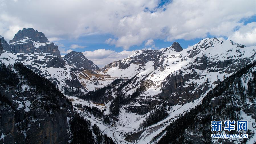 这是香格里拉市巴拉格宗景区的雪后风光(3月16日无人机拍摄)。 香格里拉市位于云南省迪庆藏族自治州。春日的香格里拉,美景如画。 新华社记者 胡超 摄