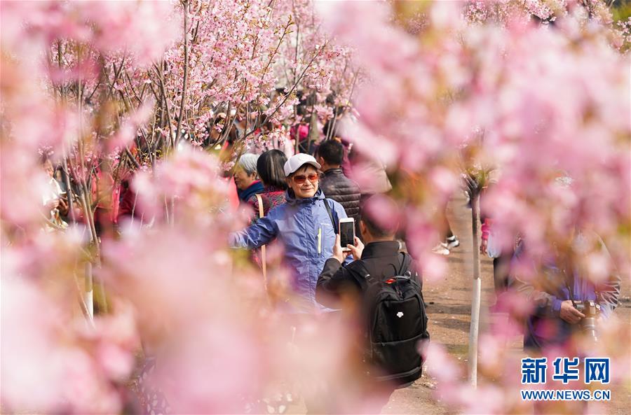 3月19日,游客在玉渊潭公园的樱花树下拍照。当日,北京玉渊潭公园第31届樱花文化活动正式开幕。今年玉渊潭公园可供游客观赏的品种接近40个,园内早、中、晚樱共计3000余株将次第绽放。 新华社记者 陈晔华 摄
