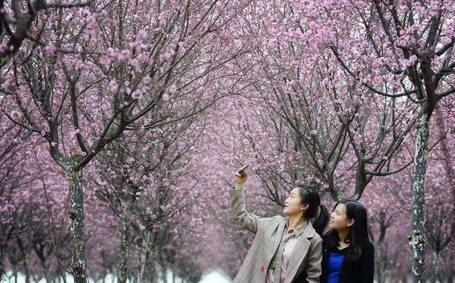 3月19日,船舶行驶在长江三峡西陵峡段。 春分将至,湖北省秭归县长江三峡岸线的桃树花开正红,构成一道靓丽的峡江风景线。 新华社发(王罡 摄)