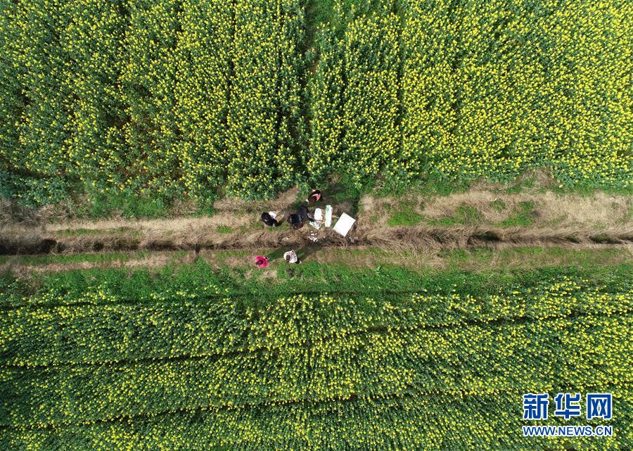 3月15日拍摄的江西省萍乡市湘东区东桥镇的油菜花田一景(无人机拍摄)。 随着天气转暖,赣西地区大片油菜陆续开花,美不胜收,吸引周边地区的游客前往观赏游玩。 新华社记者 彭昭之 摄