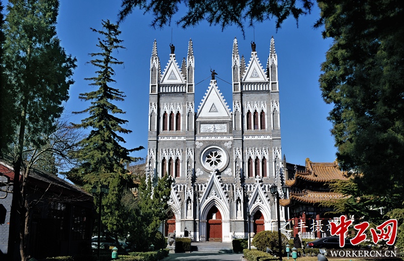 北京西什库教堂,位于北京市西城区西什库大街,是一座天主教堂,1703年开堂,长期作为天主教北京教区的主教座堂,是北京最大和最古老的教堂之一。西什库教堂是一处中西合壁的建筑,教堂的主体建筑为一座三层哥特式建筑,顶端共由11座尖塔构成,建筑平面呈十字形,建筑面积约2200平方米,高16.5米钟楼尖端高约31米,曾经是北京内城最高的单体建筑。工人日报-中工网许之丰摄影报道
