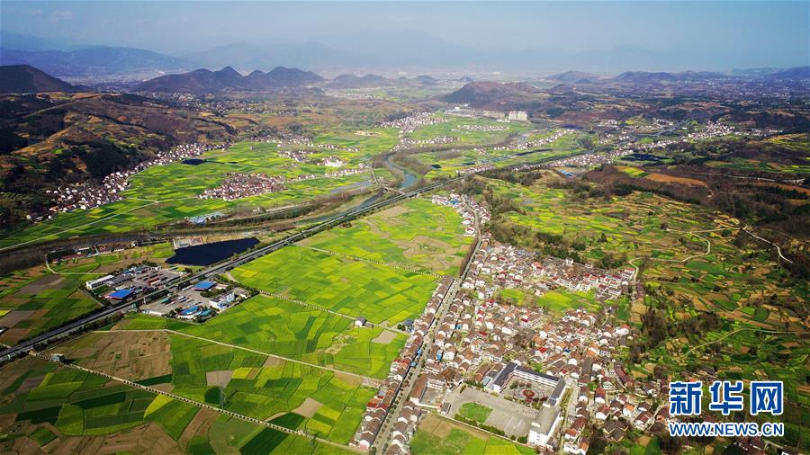陕西汉中勉县元墩镇田园春景(3月18日无人机拍摄)。 近日,陕西汉中油菜花渐次开放,田间春意盎然。 新华社记者 刘潇 摄