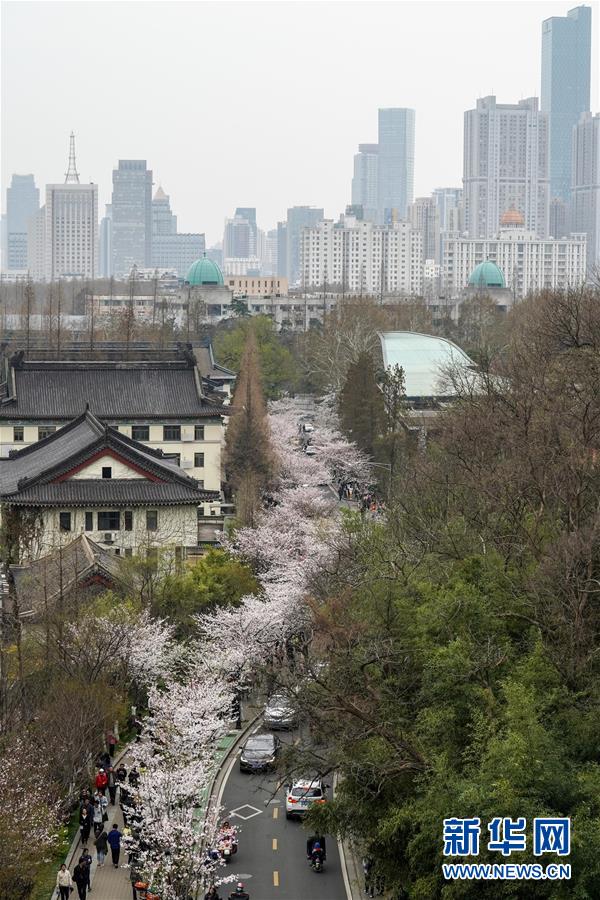 这是3月21日在南京鸡鸣寺路拍摄的樱花。当日是春分节气,南京街头盛开的樱花灿若云霞,吸引众多市民游客前来赏花游玩,享受春日美景。 新华社记者李博摄