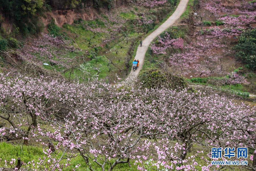 3月21日,当地居民驾车驶过成都龙泉驿区龙泉山的桃花林。每年三月,有“桃花故里”之称的四川省成都市龙泉驿区一片粉红,数万亩桃花如醉霞绯云般竞相绽放,令人流连忘返。 新华社记者 张玉薇 摄