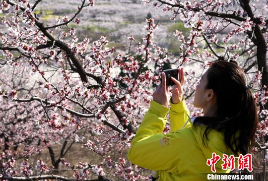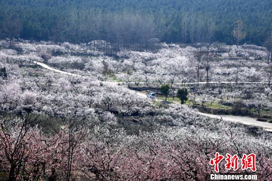 杏花之海溢满山坡,美不胜收。 朱志庚 摄