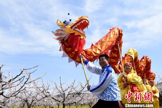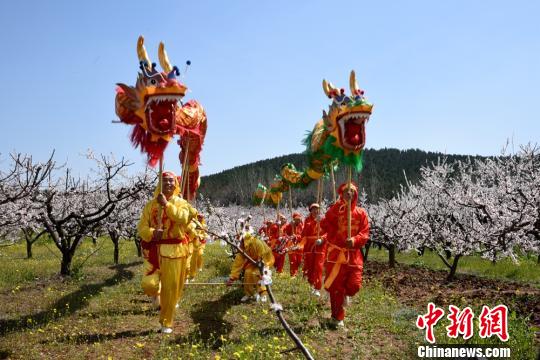 两条“瑞龙”畅游杏花之海。 朱志庚 摄
